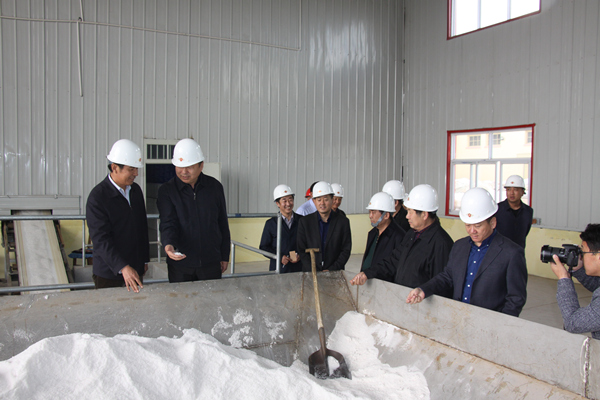 魏國權一行參觀了精鹽分廠食用鹽生產線,詳細詢問了產品結構、食鹽產量、安全質量、市場供應等方面的情況。