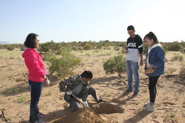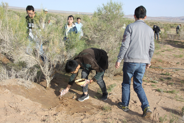2017年9月25日,由蘭州大學(xué)草地農(nóng)業(yè)科技學(xué)院博士后趙琪老師帶領(lǐng)3名博士生和2名碩士研究生來雅鎮(zhèn)與實(shí)業(yè)公司開展野外實(shí)地試驗(yàn)工作。課題組在雅布賴圍欄封育區(qū)內(nèi)選擇三片不同樹齡和土壤類型的梭梭林,運(yùn)用不同的根際有益菌進(jìn)行了肉蓯蓉接種試驗(yàn)工作,接種面積120畝,約6000窩,預(yù)計(jì)此項(xiàng)工作于2017年10月20日前結(jié)束。下一步課題組將按照試驗(yàn)方案開展認(rèn)真細(xì)致的接種試驗(yàn)、數(shù)據(jù)收集和科學(xué)分析工作,為今后大面積推廣肉蓯蓉種植和提高接種成活率提供可靠的理論依據(jù)。