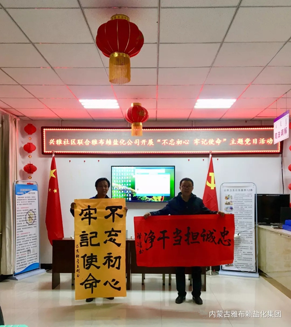 為扎實(shí)推進(jìn)“不忘初心,牢記使命”主題教育深入開(kāi)展,10月30日晚8點(diǎn),內(nèi)蒙古雅布賴鹽化集團(tuán)公司企管黨支部、雅布賴鎮(zhèn)興雅社區(qū)黨支部聯(lián)合開(kāi)展“不忘初心,牢記使命”主題黨日活動(dòng)。社區(qū)黨員、部分退休(內(nèi)退)在家黨員及鹽雕工作室和企業(yè)管理部全體工作人員積極參加了此次活動(dòng)。