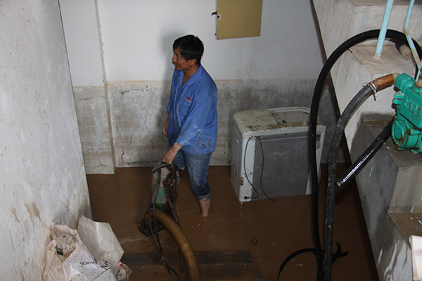 居民住宅樓地下室被洪水漫灌