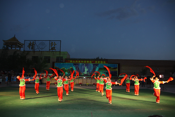 晚會在熱情豪放的民間舞蹈《鼓動天地》中拉開帷幕,接下來的歌伴舞、獨(dú)唱、笛子獨(dú)奏以及具有不同民族特色的舞蹈等14個精彩紛呈的節(jié)目,一次次把晚會氣氛推向高潮,贏來觀眾的陣陣掌聲。此次晚會在為鹽城父老鄉(xiāng)親送上一道消夏文化大餐的同時,也較好的展現(xiàn)了企業(yè)精神文明建設(shè)成果和廣大職工群眾積極向上、奮發(fā)進(jìn)取的精神風(fēng)貌。 集團(tuán)公司黨政班子全體成員及雅布賴鎮(zhèn)部分領(lǐng)導(dǎo)出席晚會并和職工群眾一同觀看了演出。 |